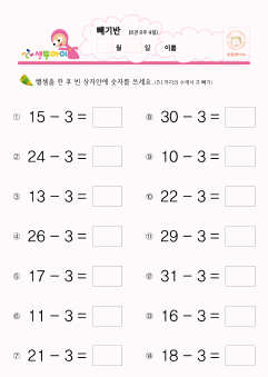 1~31까지 빼기3 종합②