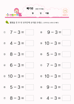 18~24까지 빼기1,2,3
