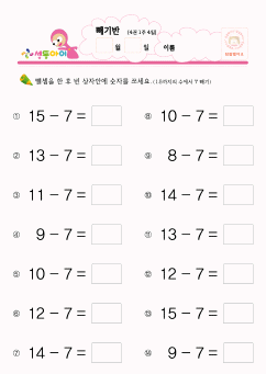 8~15까지 빼기7 ①