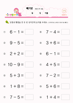 10까지 더하기와 빼기①