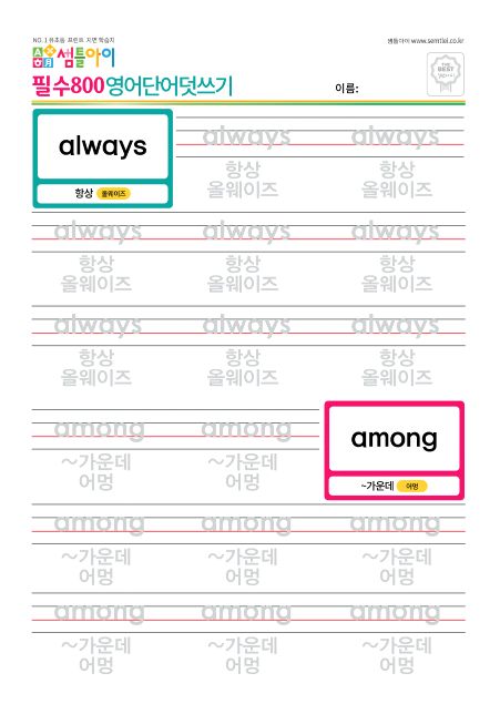 자동생성 프린트학습지 NO.1셈틀아이 학습은  원하는 문제 무제한 생성종이와 연필을 사용하는학습입니다. 매 월 NEW 학습지 업데이트