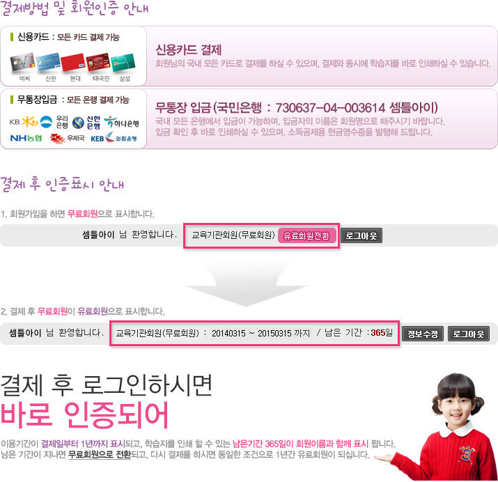 HOME > 이용가이드 > 결제안내서비스